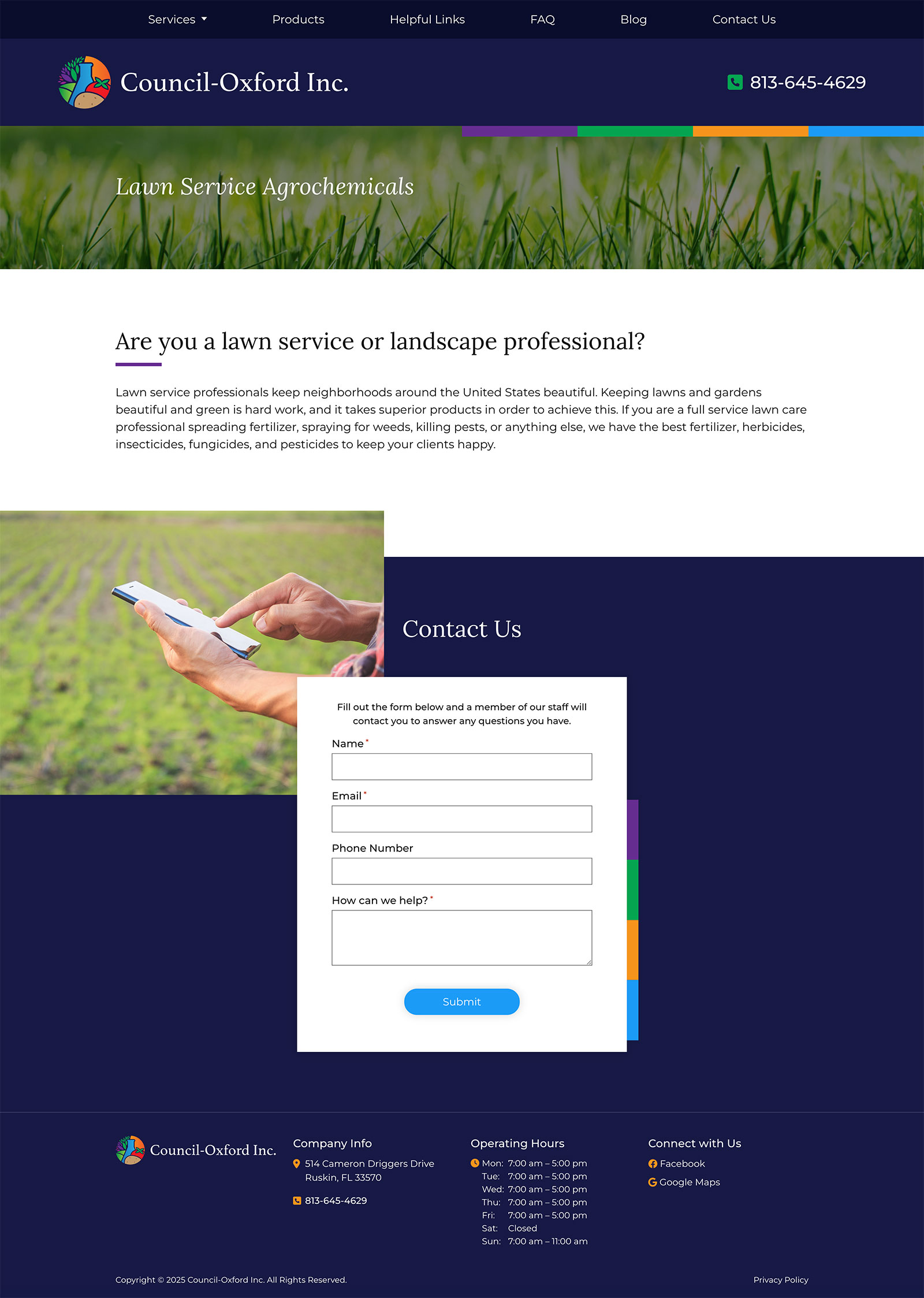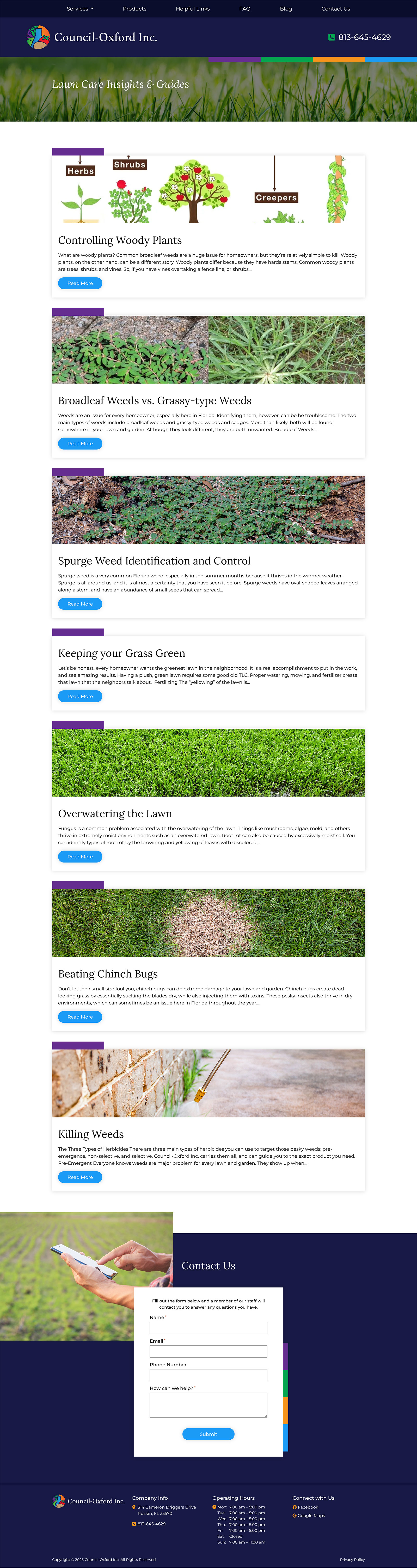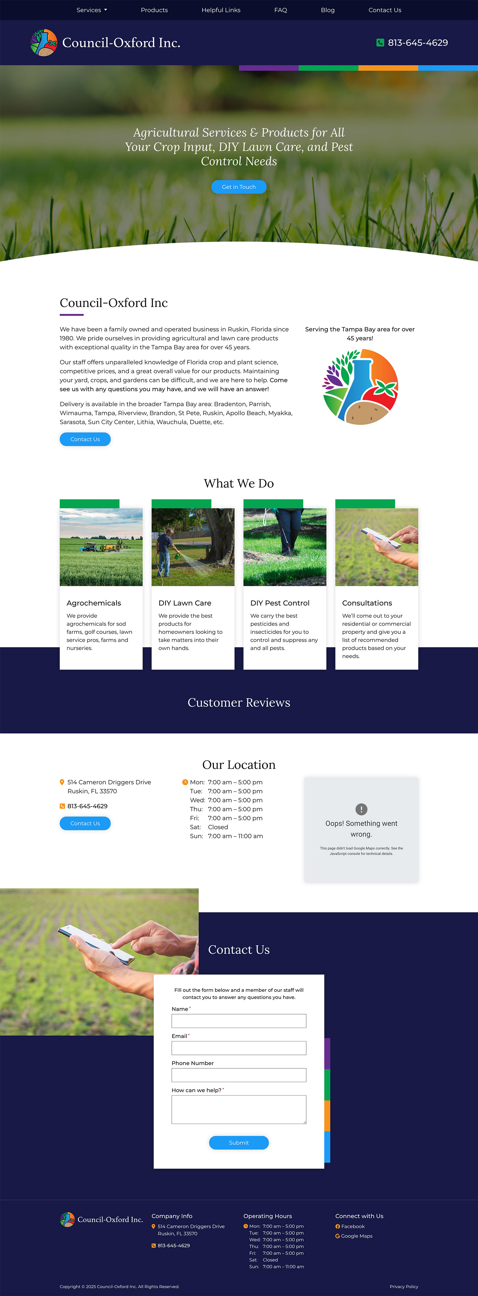 For Council-Oxford, Inc., Hawp Media developed a modern, responsive website to showcase their extensive product catalog and expert services for agricultural and turf care. The website was designed to enhance user experience, making it easy for growers, professionals, and homeowners to explore products, access consultation services, and learn about soil testing and delivery options. Additionally, we implemented a targeted local SEO strategy to improve Council-Oxford’s visibility in the Tampa Bay area, optimizing for local keywords and enhancing their Google My Business profile. This resulted in increased website traffic and stronger engagement with their diverse customer base.